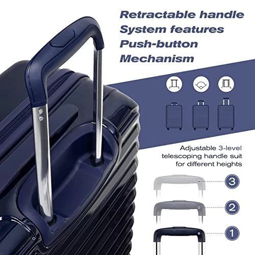 - Easy to move and maneuver. Strong locking telescopic handle, with an easy push button, can be retracted or extended for users of different heights. Multi-directional 8 spinner wheels provides great maneuverability, relieving pressure from your arms while moving the luggage.